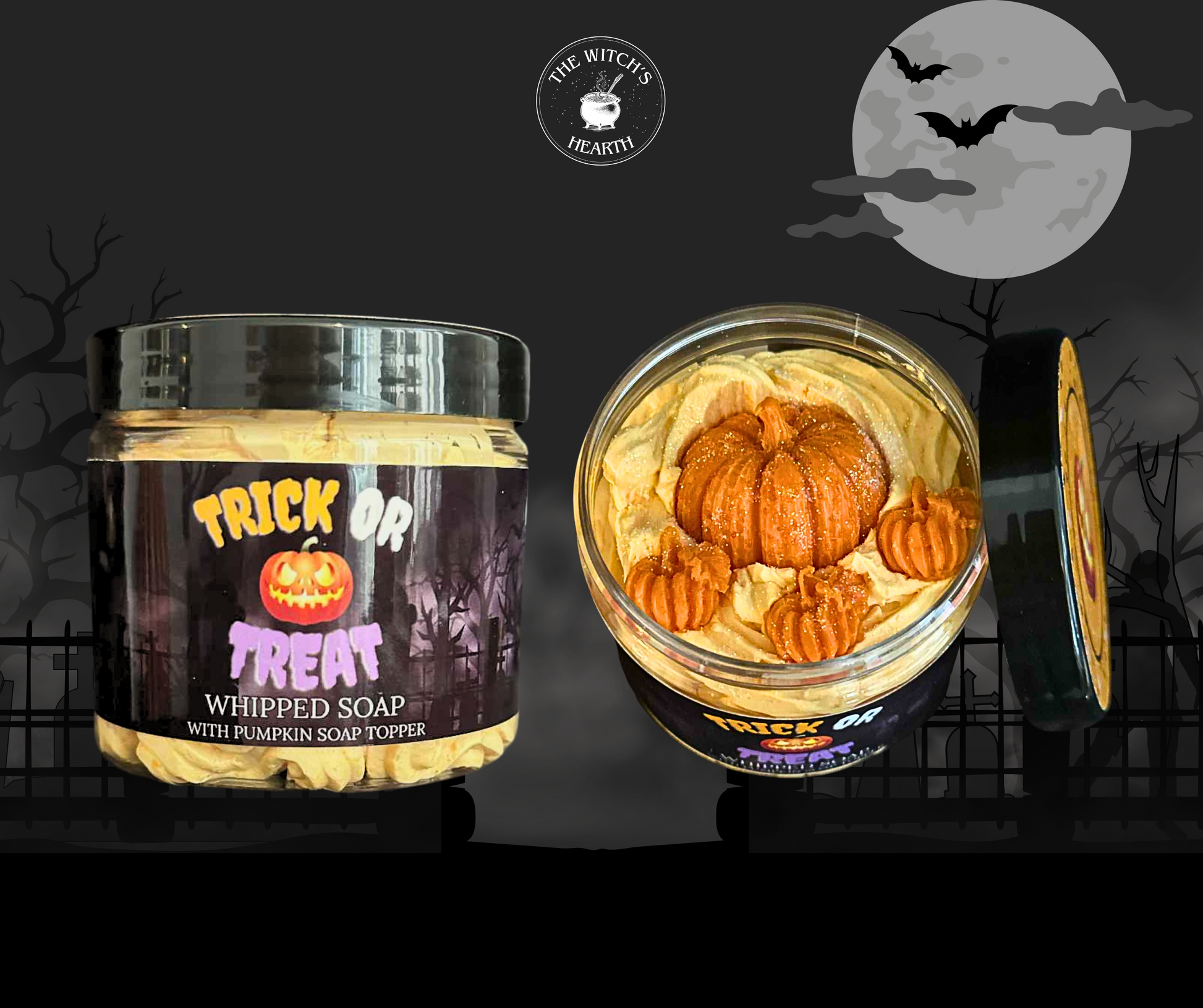 - Trick or Treat – Sweet, fizzy lemon refresher scent with a pumpkin soap topper — your Halloween must-have!